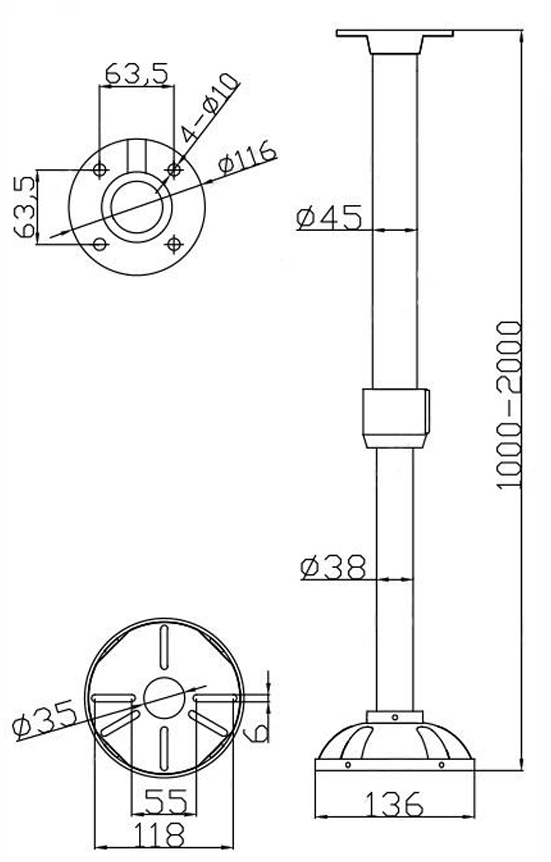Univerzální držák ze stropu nastavitelný 100-200cm