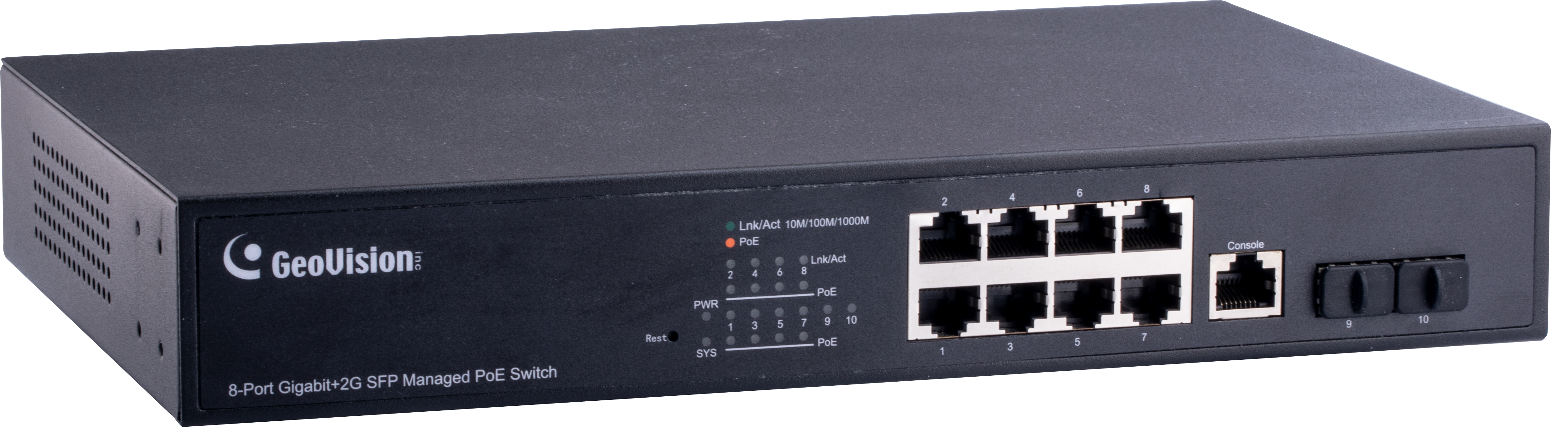 Switch je optimalizován pro kamery Geovision a podporuje napájení až 8 IP kamer. Sočástí je Rack Mount kit pro snadné uchycení do rackové skříně.