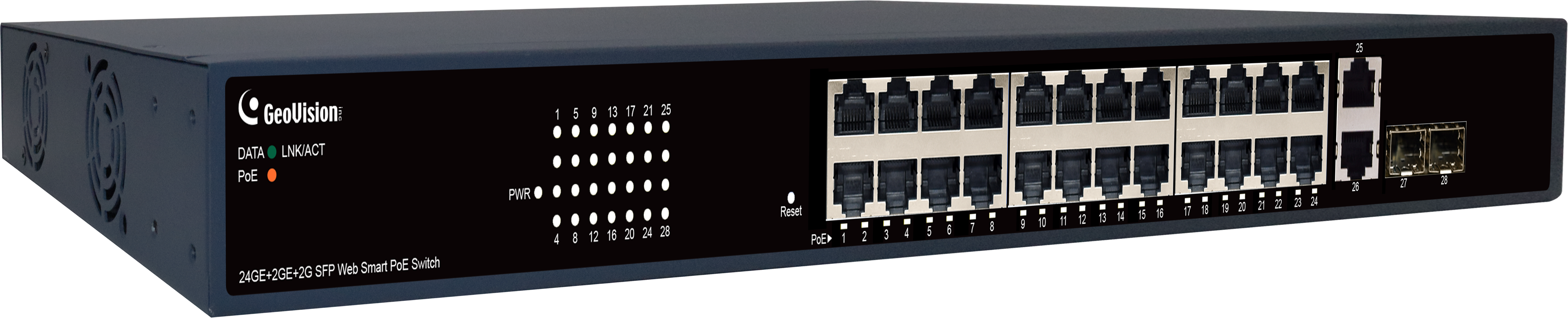 Switch je optimalizován pro kamery Geovision a je určen pro střední s velké sítě do 24 IP kamer. Na rozdíl od switche APOE2411 má pouze "EASY" webové rozhraní pro nastavení základních paramertů switche.
