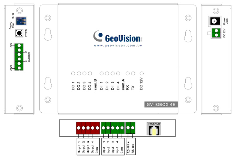 GV–IO USB Box 4E je externí modul se 4 vstupy a se 4 reléovými výstupy. Možnost připojení přes RS485, nebo přes Ethernet. (Nemá USB port!)